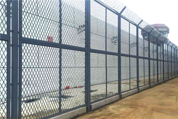 2、監(jiān)獄警戒區(qū)隔離網(wǎng)墻設(shè)計(jì)要求整體連貫一致,框網(wǎng)方正,對(duì)角線誤差不大于2cm。 隔離網(wǎng)網(wǎng)頁(yè)安裝離地距離5-8cm,框網(wǎng)與立柱采用螺栓固定邊耳式連接網(wǎng)頁(yè)每邊與立柱連接點(diǎn)不少于六處。