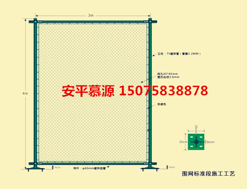 規(guī)格:室外籃球場(chǎng)圍網(wǎng)網(wǎng)孔45mmx45mm(±3mm)、內(nèi)徑:2.3mm 外徑:3.6mm(±0.15)