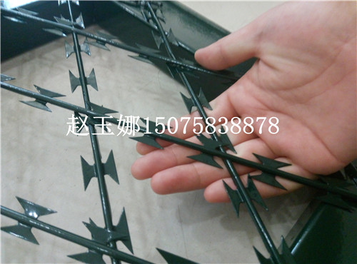 刀片刺網是近年在監獄應用比較廣的一種防護隔離網,可以用在外警戒區隔離網、巡邏道加高隔離網、內5米警戒區隔離網以及各個功能區隔離網。是一種新型的在防御領域較突出的圍網。下邊我們介紹一款常用的刀片刺網隔離網的規格型號及工藝要求,這也是監獄中采用的比較主流的規格型號。